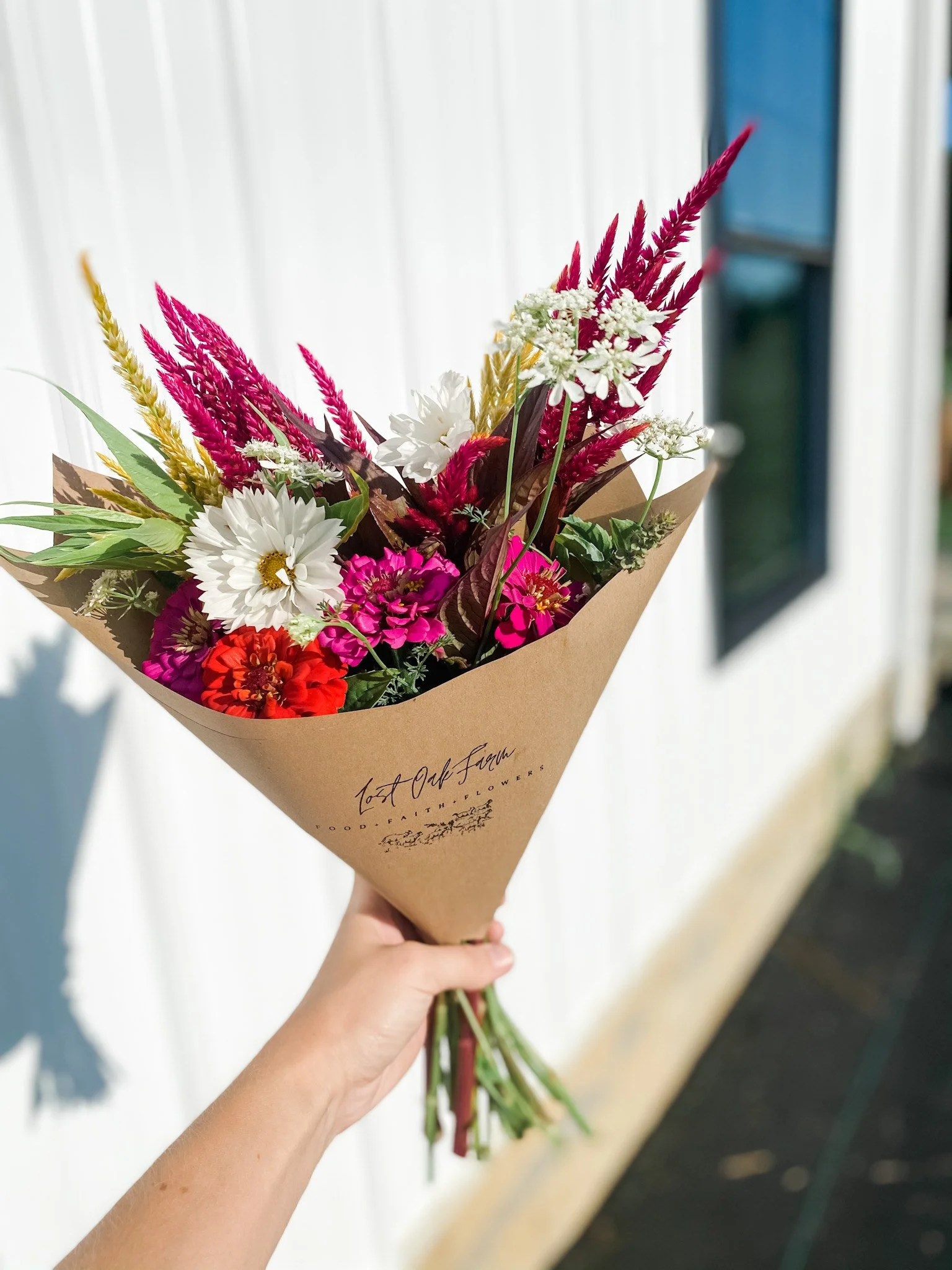 Summer bouquets filled with zinnias, cosmos, amaranth, sunflowers, and more are available throughout the season. Pick up & select local deliveries are available. Contact me to order your specialty bunch!